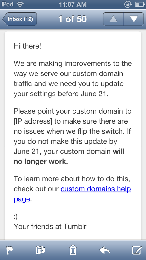 : Man, this urgent [IP address] email from Tumblr is the opposite of not screwing it up: