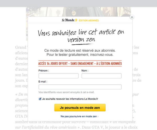 Je découvre la fonction "Lecture zen" sur LeMonde