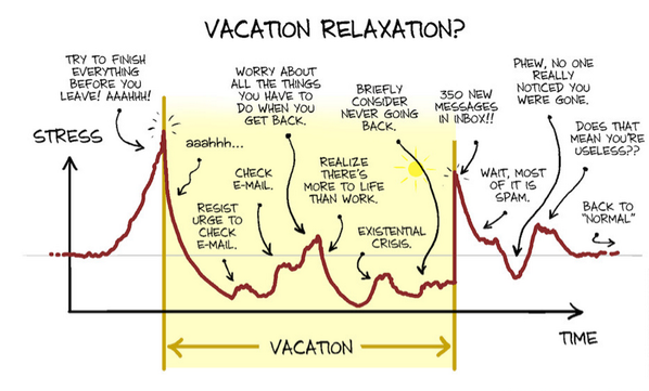 : Le cycle du stress en congés. A titre personnel , je m'y reconnais pas mal (repéré par