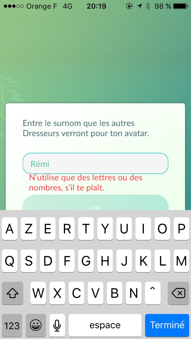 Dans Pokémon GO, mon prénom n'est pas un nom valide. Je suppose que "Pokémon" non plus, du coup.