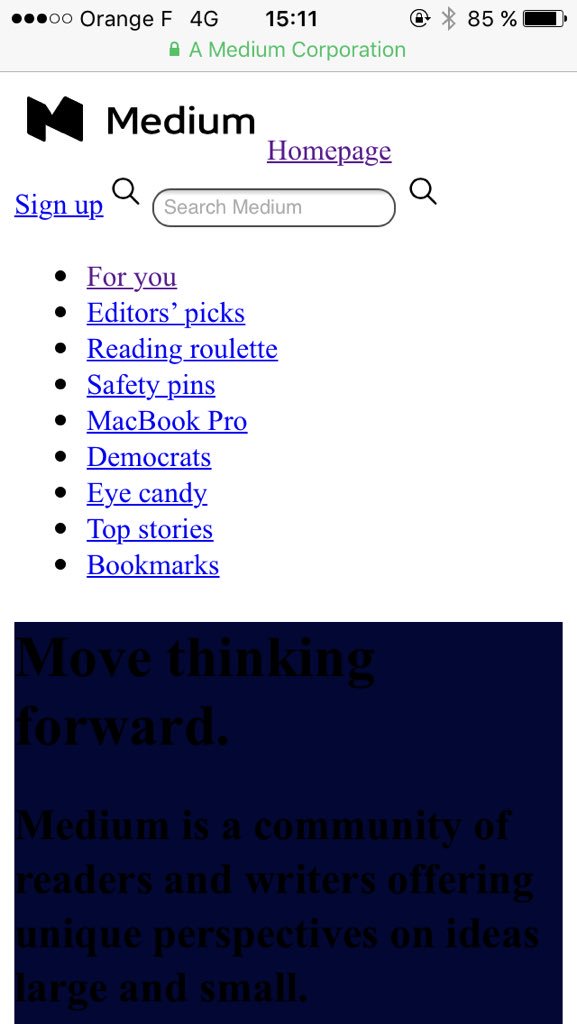 Avec le problème de DNS d'Orange, les CSS de Medium sont bloquées. Un bon rappel de l'importance de l'amélioration progressive.