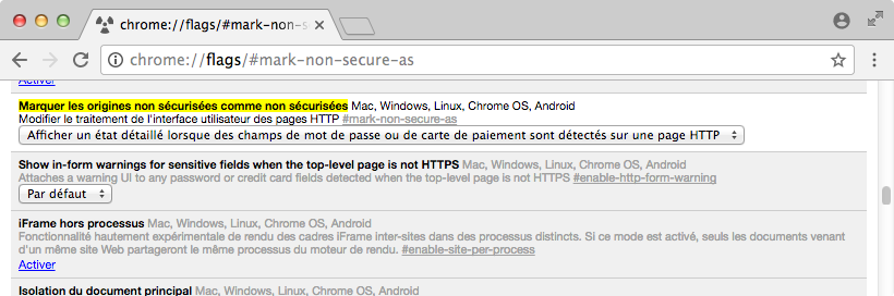 Vous pouvez tester ça dès maintenant dans Chrome Canary en activant le flag #mark-non-secure-as à "Afficher un état détaillé…".