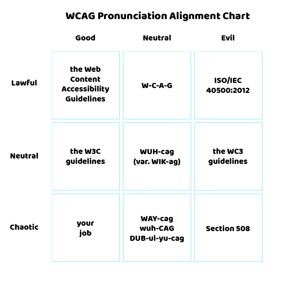 : Here we go: the WCAG Pronunciation Alignment Chart.