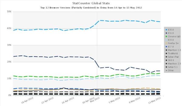 On dirait que les MAJ automatiques d'IE6 à IE8 ont démarré en Chine. Hourra \o/ (via