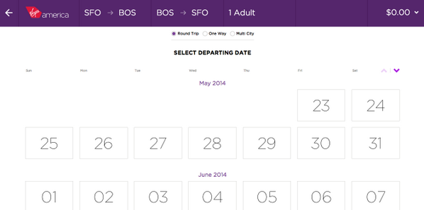 Genre la sélection de date: l'info la plus importante, d'habitude dans un pauvre petit datepicker. Ici, pleine page.