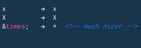 : ××× Protip: use × HTML entity for close buttons rather than the letter X for a perfectly angled ×