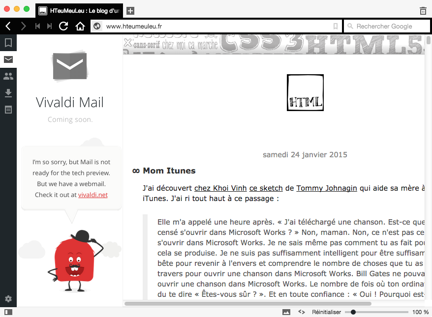 Le navigateur Vivaldi va intégrer un lecteur d'e-mails. La loi de Zawinski est respectée.