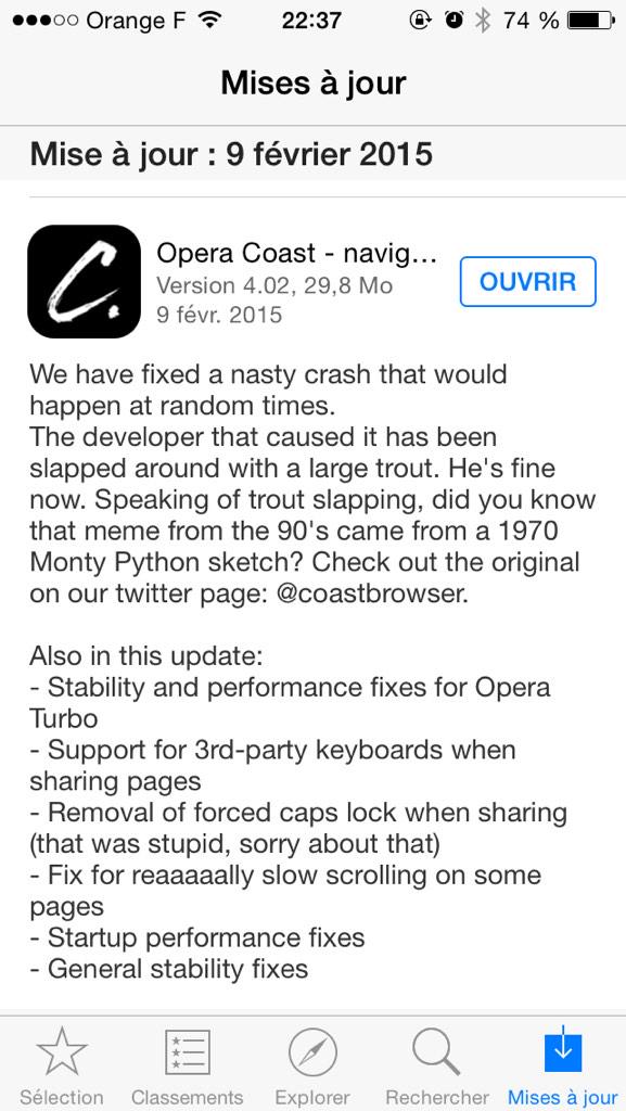 Je n'utilise pas souvent Coast, mais leurs logs de mises à jour sont toujours aussi plaisantes.