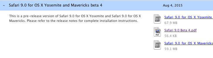 Une beta de Safari 9 est disponible pour OS X Yosemite et Mavericks
