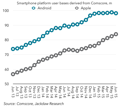 : The iPhone 6/6+ have basically stalled the growth of the Android base in the US…