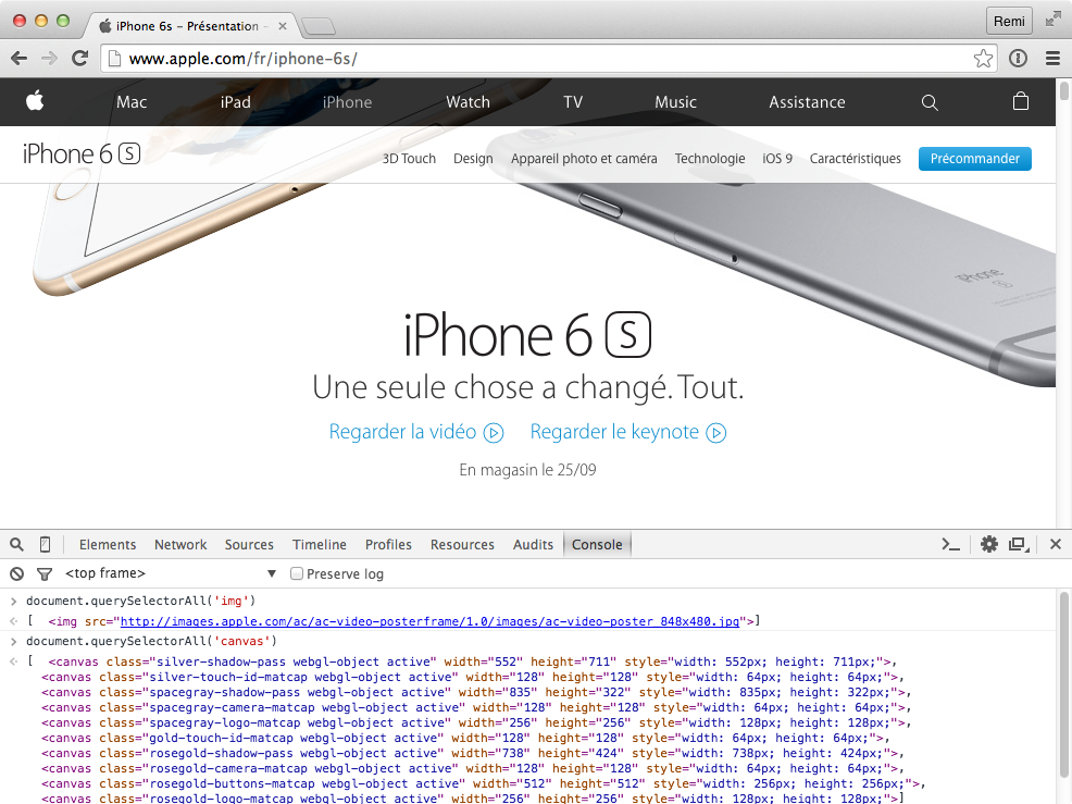 Je remarque que la page de l'iPhone 6s n'utilise aucune balise <img> mais que des <canvas>.