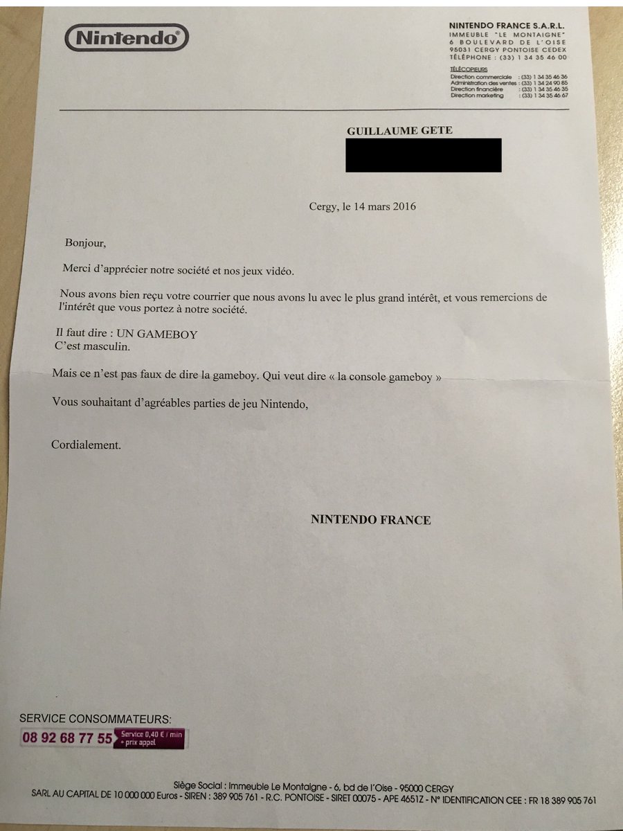 : LE ou LA #Gameboy ? J’ai écrit à Nintendo France. Voici leur réponse officielle. Deal with it.