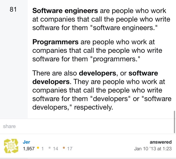 : What's the difference between Software Engineers, Programmers & Developers? 👍 Jer, 👍!