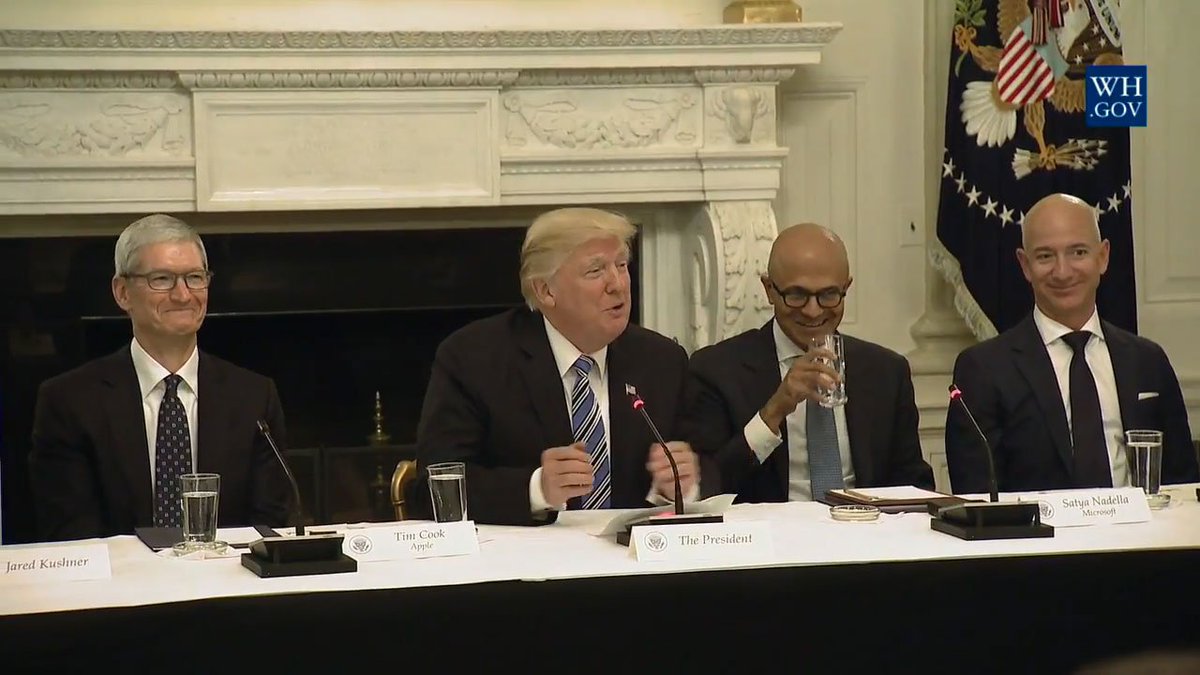 Alors oui, sur les vingt minutes de la table ronde, il en passe 19:50 à tirer la tronche. whitehouse.gov/featured-videos/video/2017/06/19/president-trump-participates-american-technology-council-roundtable